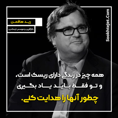 [bs-quote quote=”راه‌اندازی یک شرکت مانند این است که خودت را از یک سخره‌ی بلند پایین بیندازی و انتظار داشته باشی که هواپیمای نجاتی از راه برسد!” style=”default” align=”center” color=”#a02424″ author_name=”رید هافمن” author_job=”بنیانگذار لینکدین” author_avatar=”https://sookhtejet.com/wp-content/uploads/2019/10/رید-هافمن.jpg”][/bs-quote]