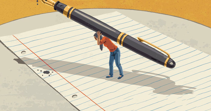 بسیاری از مردم نوشتن هر چیزی طولانیتر از یک یادداشت خلاصه را، کابوس شبانه و وقت تلف کن مییابند. آنها در این کار مسامحه میکنند و یا به کاغذ سفید خیره میمانند و وقت را تلف میکنند. آنها مدتها ناامیدانه برای تحریر افکارشان به دنبال لغات درست میگردند.چند خطی مینویسند، سپس آن را پاک میکنند. دوباره شروع میکنند، بار دیگر از آنچه که نوشتهاند احساس نارضایتی میکنند. همینطور ادامه مییابد، زمان به سرعت میگذرد و ضربالاجل نزدیک و نزدیکتر میشود.