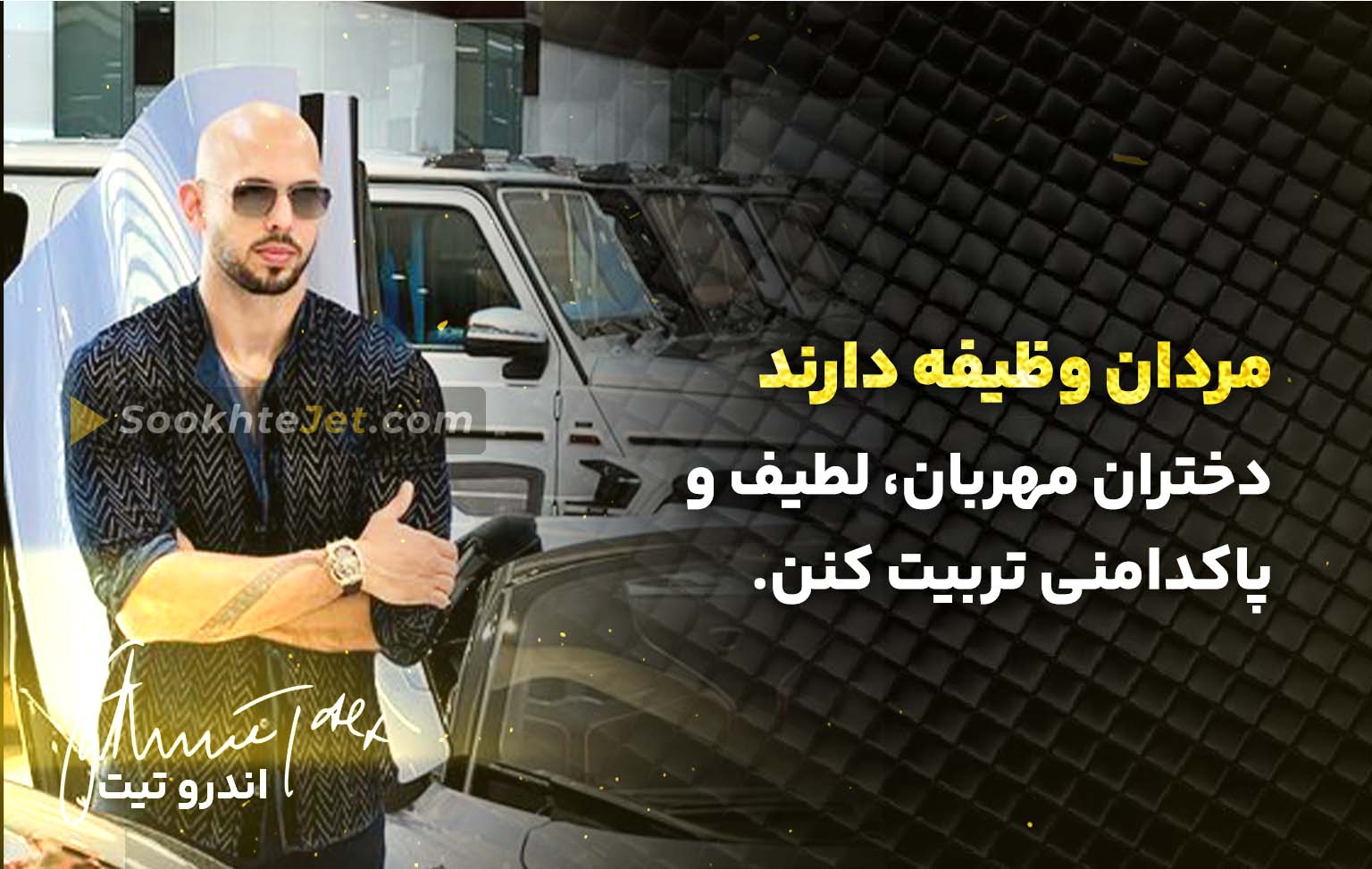 در این مقاله قصد معرفی اندرو تیت را نداریم اما اگر به تک تک جزئیات زندگی و موفقیتهای او علاقهمند هستید وارد لینک زیر شده و زندگینامهی کامل او را بخوانید
