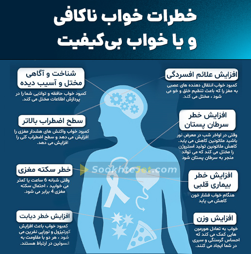 این اختلالات و بیخوابیها، بیماریهای جسمی و روانی گوناگونی را به همراه دارد و گاهی مواقع این بیماریها، بدون هیچ شوخی و تعارف، انسان را از پای درمیآورند.